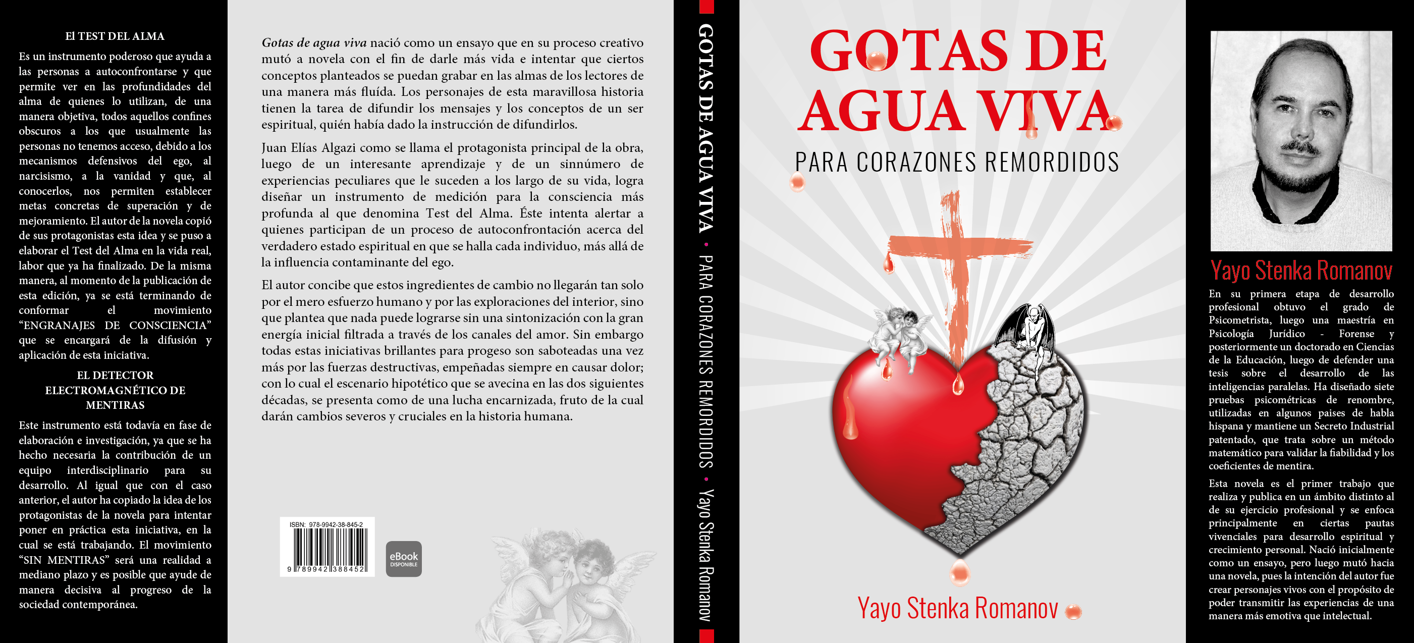 En esta novela se narran varias situaciones en las cuales los protagonistas, cuando logran entender las causas primordiales del mal que les aqueja, finalmente empiezan a tomar las precauciones para que aquel fenómeno que causa daño propio y ajeno no se siga repitiendo. Y, de hecho, gran parte de la solución se basa en incrementar los niveles de consciencia, empatía y solidaridad, inyectando en el corazón de las personas la mayor dosis posible de compasión. Juan Elías Algazi, como se llama el protagonista principal de la obra, quien tiene una formación en ingeniería y luego en psicología, a la cual suma un vasto número de experiencias peculiares que le suceden a lo largo de su vida, logra diseñar, luego de muchos años de preparación específica en el campo de las mediciones, el denominado Test del Alma. Este es un instrumento novedoso que intenta alertar a la consciencia más profunda acerca del verdadero estado en que se halla cada individuo, permitiéndole conocerse mejor a sí mismo, más allá de la subjetividad de autoanálisis sesgados por la influencia contaminante del ego, facilitando, de esta manera, el poder vislumbrar de manera clara y objetiva su verdadera situación interior, el verdadero estado espiritual en el cual se hallan. Dado que el enfoque de la novela es también futurista, se narra proyectivamente lo que aparecerá, de manera simultánea, como consecuencia del desarrollo del Test del Alma. Mediante todo lo que se describe se llega a comprender que la sumatoria de los mejoramientos individuales, junto al perfeccionamiento masivo de las familias y de toda la sociedad, conseguirán que cada sujeto, grupo, nación y toda la sociedad en su conjunto, se compongan y mejoren. El autor concibe que estos ingredientes de cambio no llegarán tan solo por el propio esfuerzo, por las exploraciones del interior y por las luchas contras las fuerzas destructivas. Plantea que nada puede lograrse si no se logra una sintonización con la Gran Energía Inicial; aquella que, ya comprendida más allá de los confines del tiempo y filtrada a través de los canales del amor, llega a ser percibida como una unidad indivisible, en la que confluyen origen y fin, atravesando los caminos del bien y del mal. El autor expone y presenta a estas Gotas de Agua Viva como todo este aprendizaje y cura que llega por la misma sinergia entre lo espiritual y lo terreno. Son ingredientes de un método realista y viable que facilita y agilita los procesos de transformación que se dan para que los diferentes ciclos de la creación y de la evolución puedan culminar, generando una mutación, en una época que se avecina con cambios severos y cruciales.